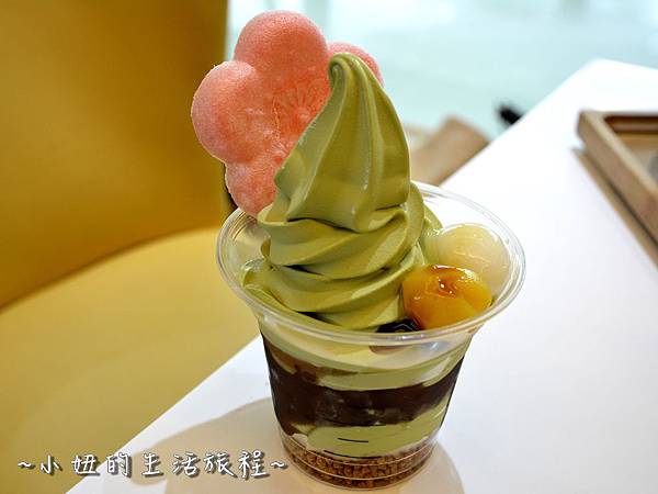 辻利聖代(抹茶口味) 裡面有抹茶霜淇淋、白玉、蜜栗子和一片櫻花餅乾,裏頭有紅豆泥和脆脆的玄米粒,吃起來口感附有層次、甜而不膩口,純粹天然的滋味,比市面上奶味濃厚的聖代都美味多了!!