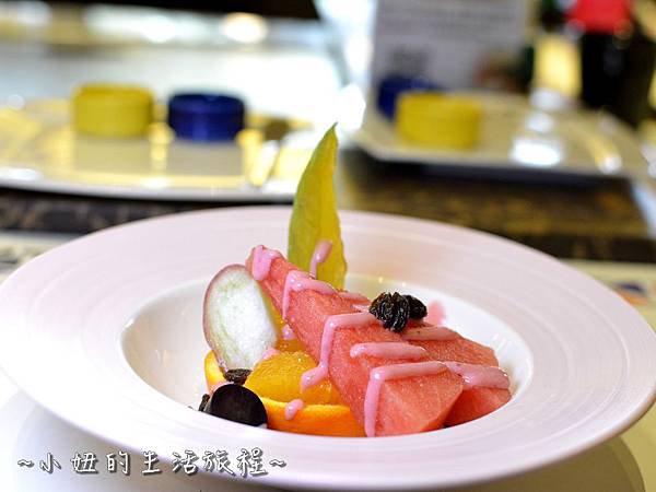 水果沙拉,裡面有蓮霧、柳橙、西瓜、楊桃,佐藍莓沙拉醬,補充滿滿的纖維和維生素C
