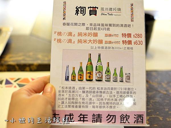 純米大吟釀的味道屬於微微偏辣的濃醇口感,不是甜甜的那種清酒,配鐵板燒非常適合