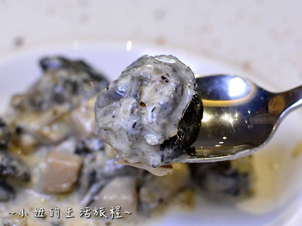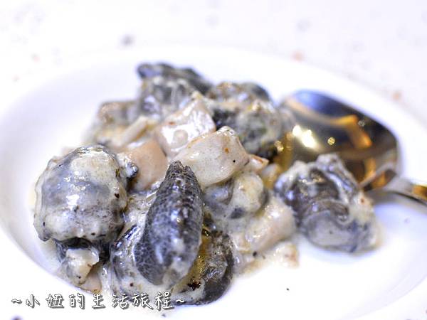 餐廳招待的蝸牛杏鮑菇佐奶油白醬,妞媽非常喜歡這一道菜,