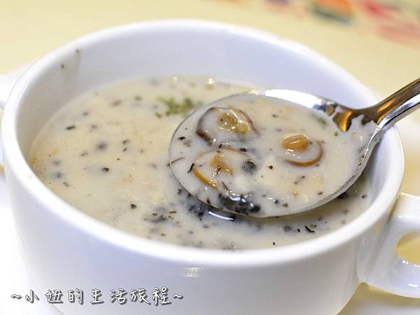 黑松露原野蘑菇湯,蘑菇濃湯的質地不會非常濃厚,使用黑松露點綴,更增添湯的鮮美,喜歡松露味道的妞媽立馬完食~