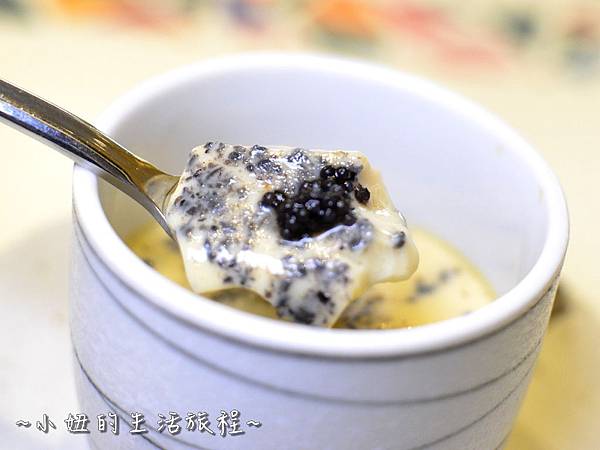 芙蓉杯蛋,上面是魚子醬下面是黑松露醬,多層次的風味透露出華麗的丰采,將平凡的蒸蛋提升至最高等級~