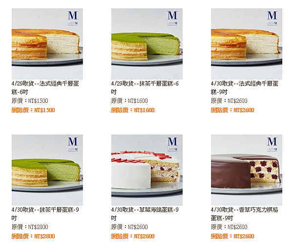 1. 9吋的法式經典千層(2600元)—將於5月3日中午12點起於晶華麗晶酒店集團線上購物系統開放預購,5月11日至5月13日於酒店地下二樓麗晶精品開放提貨。