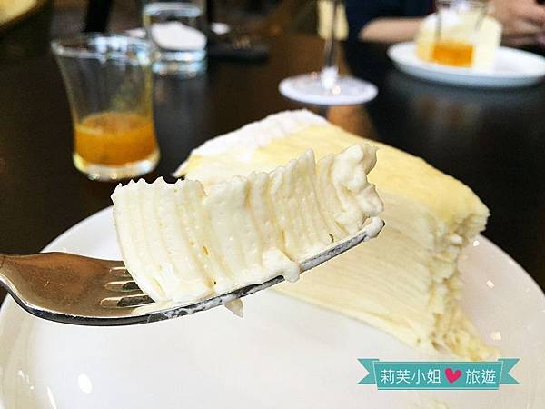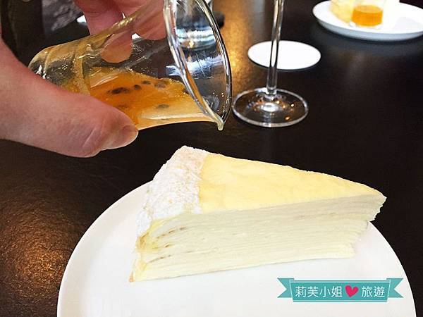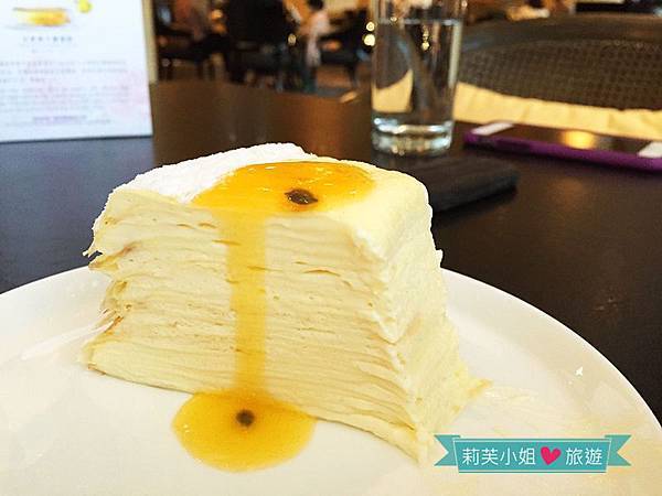 另外,千層蛋糕的美味秘訣在於每一層的薄餅厚度適中,中間的奶油塗得不多不少,當然還有每一個角落入口的滋味都是相同美味。我曾經吃過中間奶油太多,側邊過少且薄餅過乾。很開心這次吃到的百香果千層蛋糕每一個角落都是讓人如此滿意。
