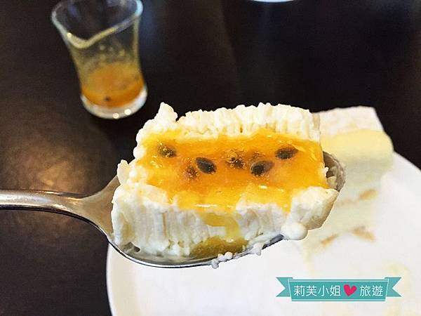 本來以為百香果醬汁會直接淋在蛋糕上呈上,不過還好是被放在一旁,這樣才能吃到原始的風味。