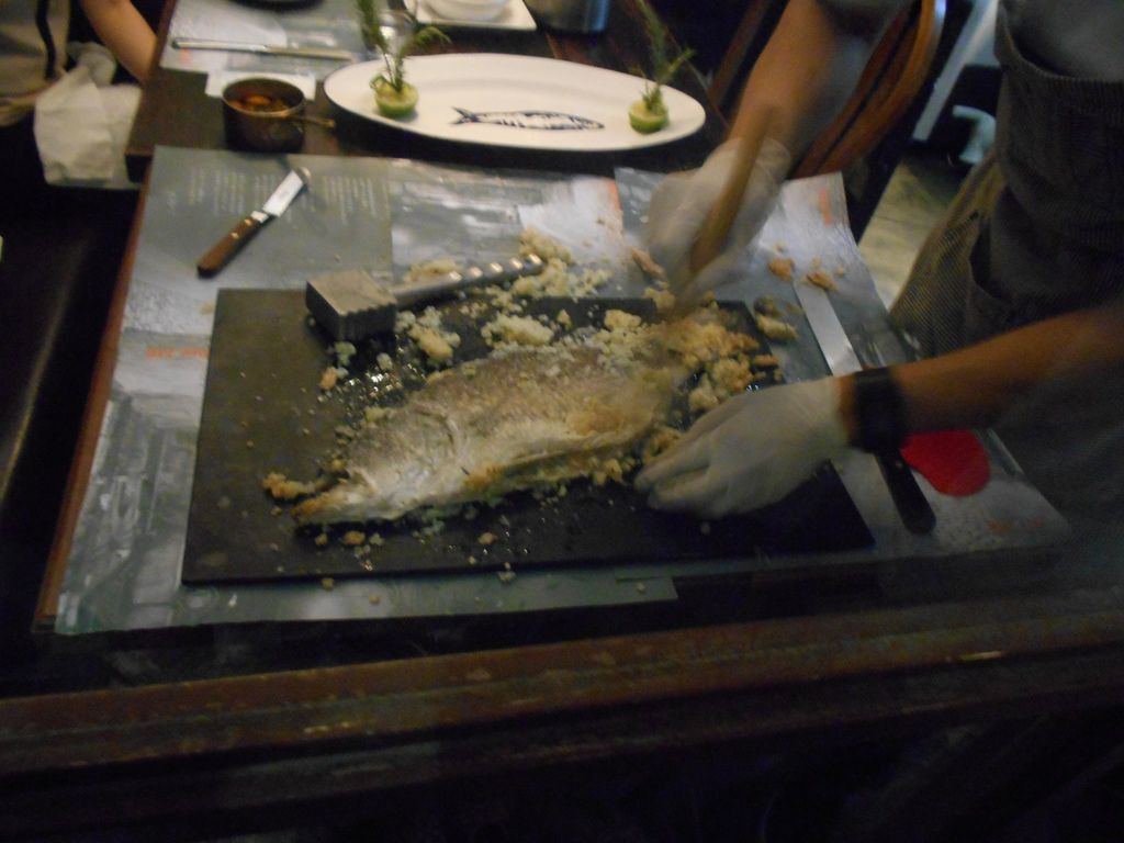 帥哥主廚現場示範昂貴的紙包魚的傳統做法,相當費工又耗費體力,需事先預訂.紙包魚是2人份的經典名菜,適合全家大小共享經典美食!