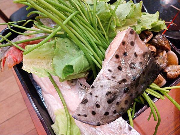 這區我會拿的差不多這些: 水蓮必拿 其餘青菜少許 鮭魚頭 蛤蜊