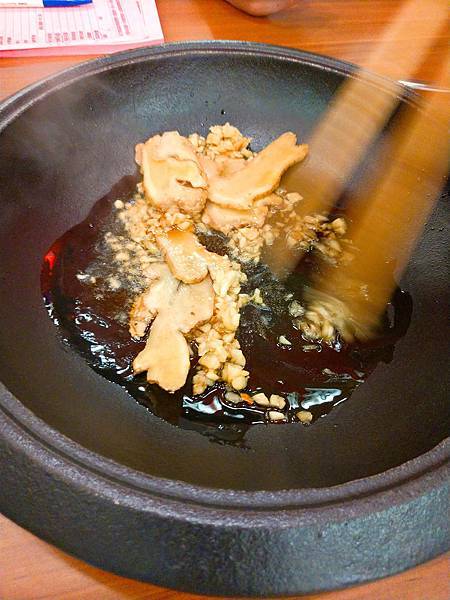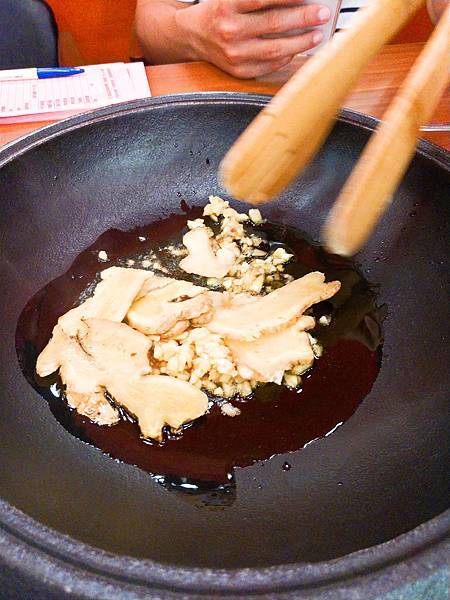 將 薑 蒜 油 醬 等調料丟入鍋中爆炒至香