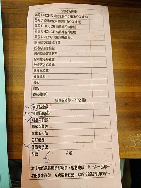 蠻特別的是肉單上有水餃 而且口味都很酷 一樣是打勾的才有