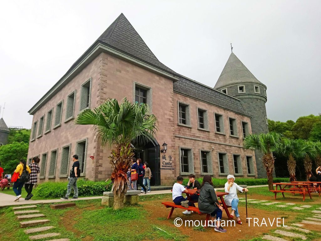 行程來到尾聲, 最後一站宜蘭頭城鎮外澳金車城堡咖啡館。咖啡館的外型宏偉得來又童話, 外型仿照歐洲城堡而建, 可以看到蘭陽平原以及龜山島!我們在2樓的座位喝咖啡、休息一下, 因為2樓的風景比較好, 且中間的玻璃天幕透出自然光, 感覺休閒。我們大概在咖啡館逗留了一個小時左右就正式踏上回程的路上了。