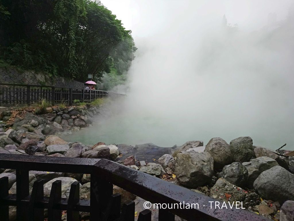 接下來雨越下越大, 正在考慮究竟是離開回到酒店去還是做甚麼好, 臨時就決定到硫磺谷吧! 登上了的士, 大概10分鐘內就到達了, 想不到硫磺谷這邊也有不少人, 不過大多都是本地人假日自駕過來北投玩。雨一直的下, 而且下得很大, 我們也就乖乖的讓雙腳享受溫泉浴。