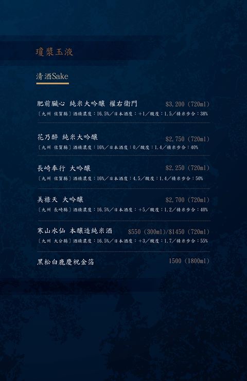 店裡有多款少見的九州清酒,精選的純米大吟釀特別適合喜愛清酒的饕客們,來這裡喝個盡興。「飲酒過量,有害健康」