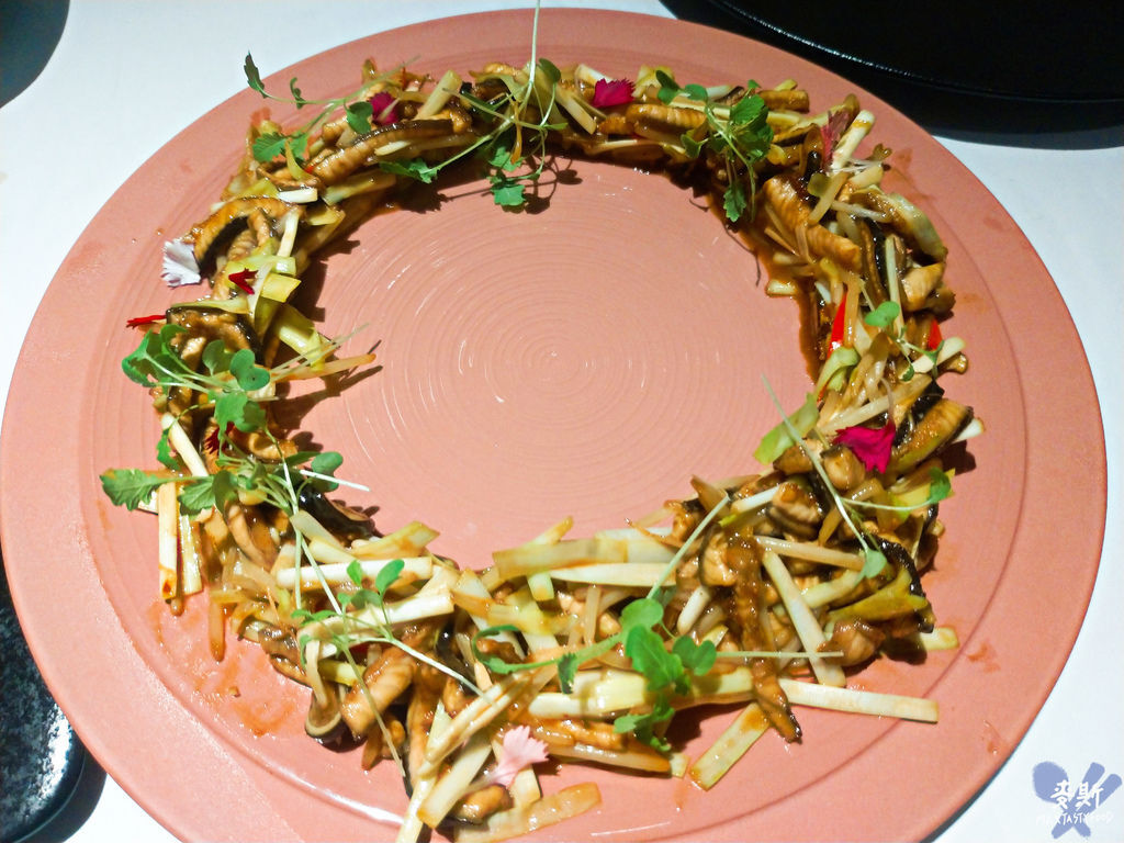 看似相對平凡的一道 用了彎月形式的擺盤 中國繪畫特色的留白 饒富興味