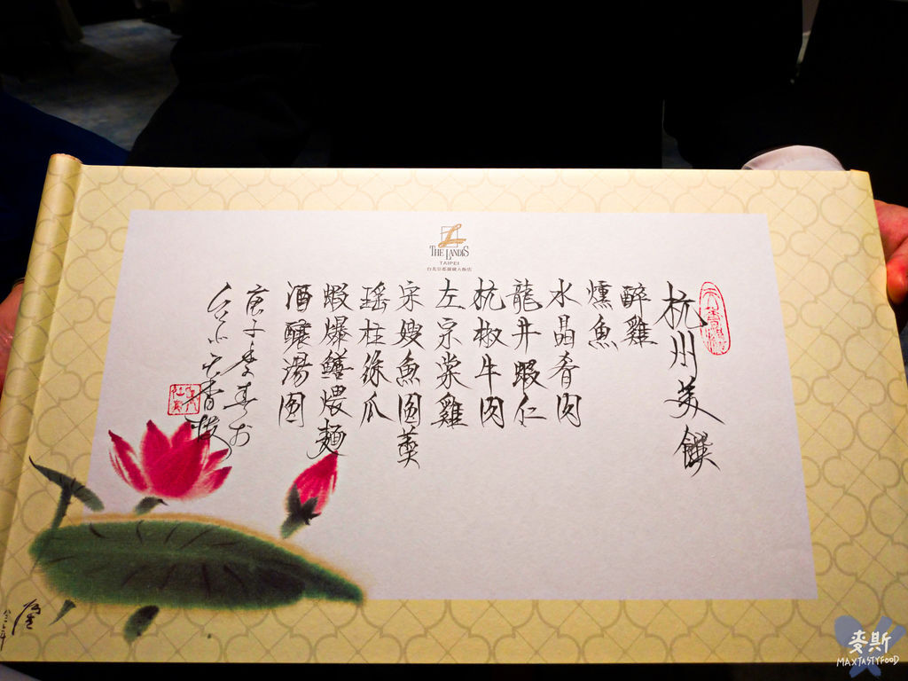 吃到一半 服務生拿來了一卷書法 是請書法老師用瘦金體把我們點的菜色寫上 贈送給我們