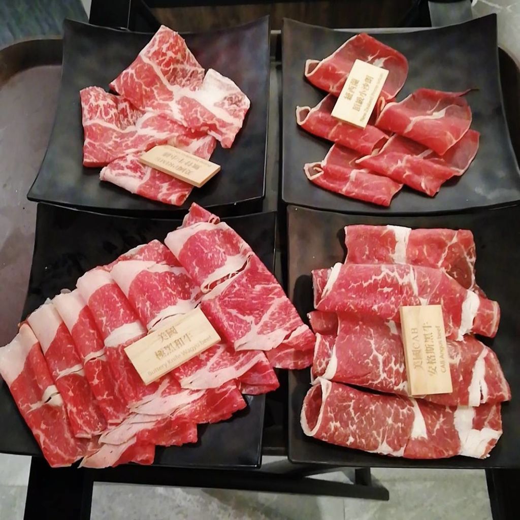 最基本的set如果客人不知道怎樣點,服務員會幫你配好成這樣絕美華麗的火鍋盛宴,讓人品嘗到海陸盛宴豪華大餐,驚艷不已!肉質更是新鮮吃得見,美國牛,台灣嫩切櫻桃鴨,丹麥梅花豬,台灣豬五花及無骨雞腿肉和紐西蘭小羔羊,紐西蘭羊五花,這些豪華肉類品項已經精緻豐富到嚇死人,菜單上也很貼心標註美國牛及紐西蘭頂級小沙朗的最佳食用熟度是多少,讓客人追求頂級美味時可以掌握到涮到最美味的程度!不怕吃到老老的牛肉片~~