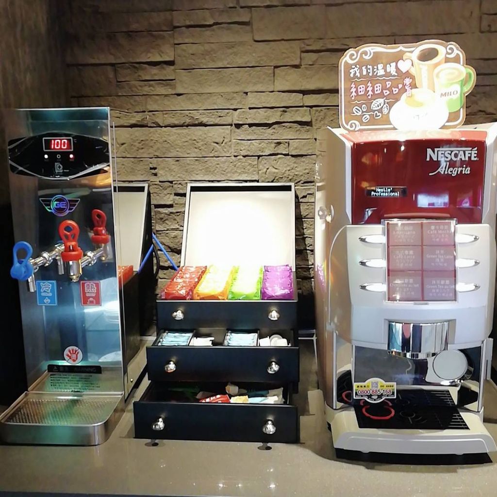 備有熱水可讓客人自由挑選精選峰圃茶莊的4種茶包,像是錫蘭紅茶,茉莉香片,凍頂烏龍,綠茶,也有準備砂糖及奶精可以讓客人加入熱茶一起享用!
