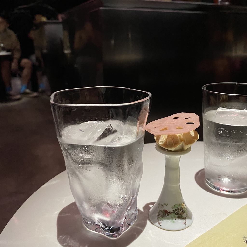 內含氣泡的烏龍茶通寧+昆布,因為有氣泡的關係,真的非常適合在這炎熱的季節當作第一道開酒,喝起來清涼,酒氣也不會太重,淡淡的昆布味畫龍點睛。一問之下這杯調酒的配方和這家有名的Zen Tonic是類似的