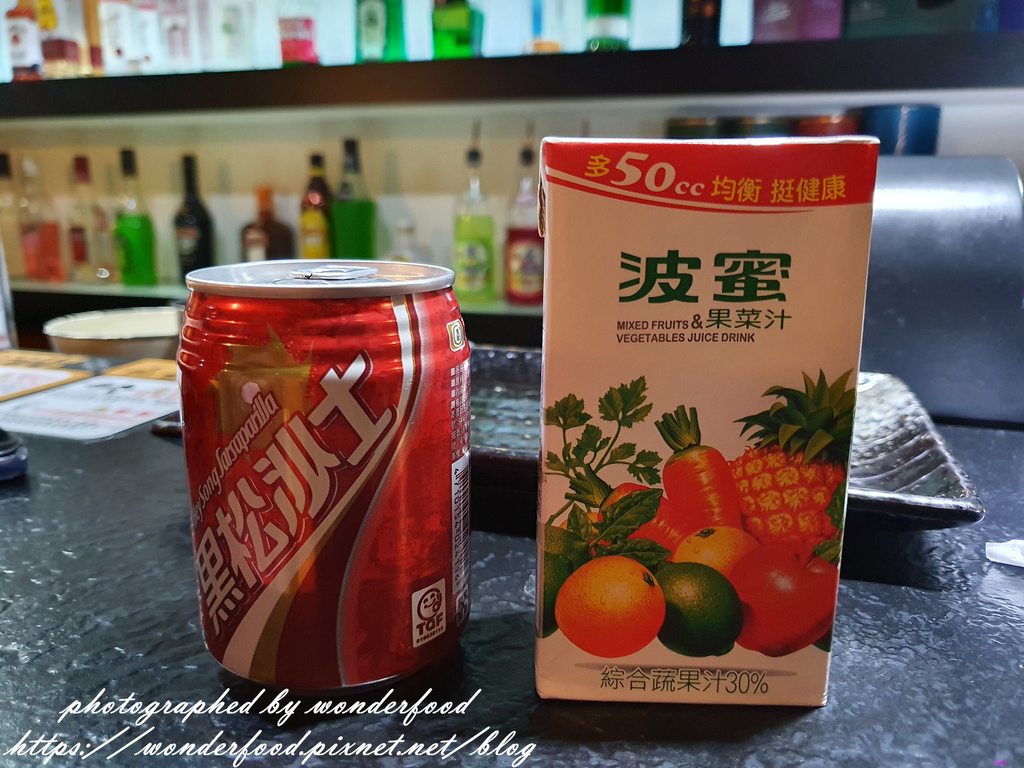 店家提供許多罐裝和鋁箔包飲料自取喝到飽