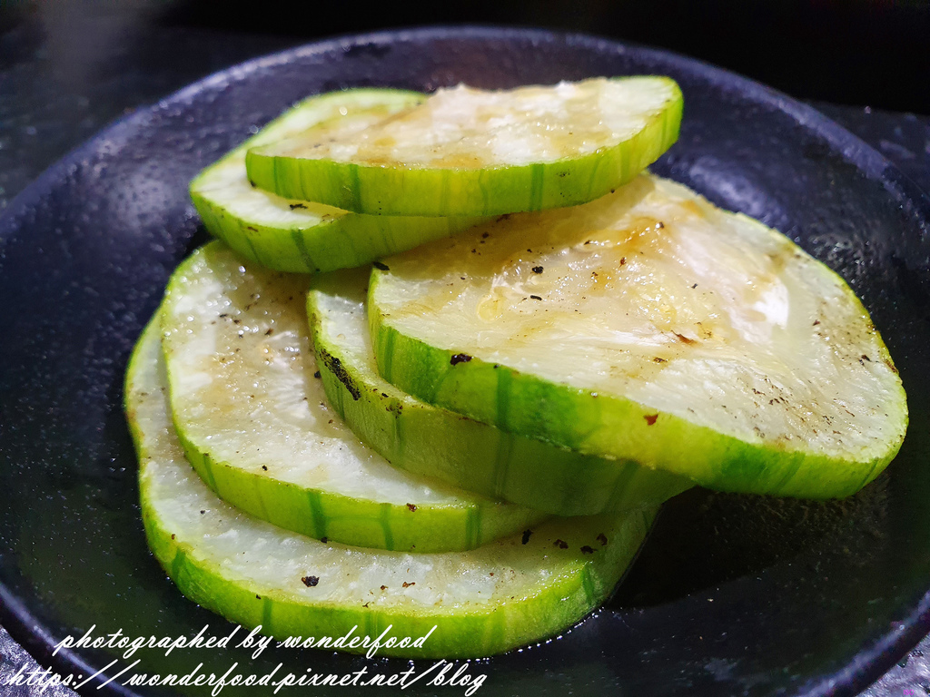 烤絲瓜把絲瓜的甘甜水份全部都鎖在裡面了