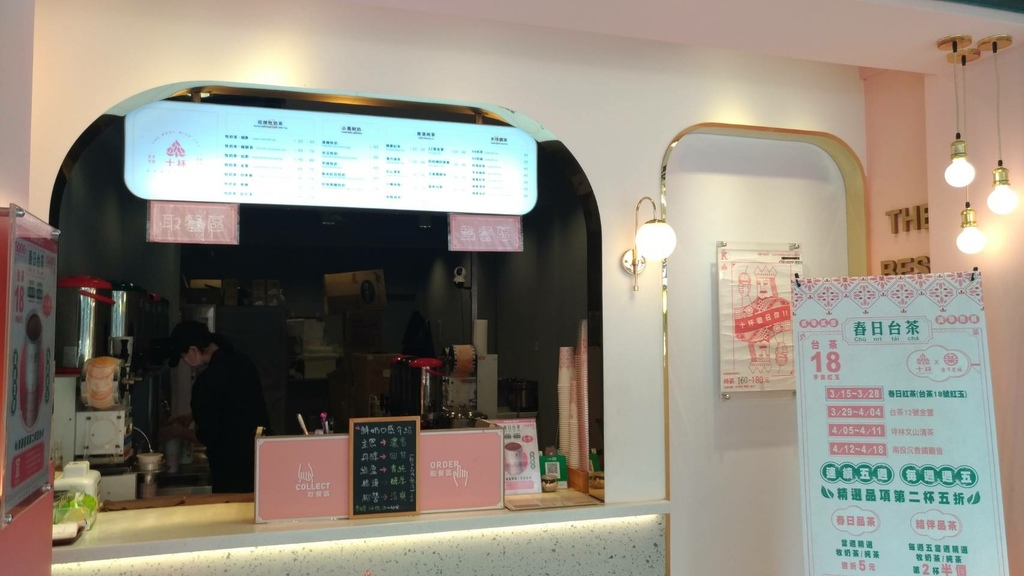 洋溢著跟春天一樣溫暖和煦的暖粉紅色色調設計,濃濃少女味,想不到賣的是超好喝的知名台茶~~保證能讓挑嘴的饕客滿意不已↓