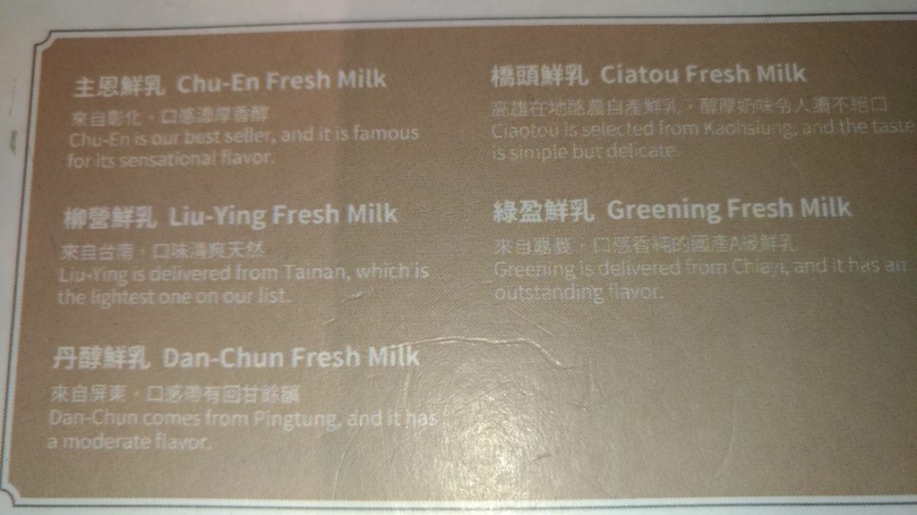 十杯莊敬店更不計成本推出五種鮮奶可讓愛喝手搖飲的老饕甚至可以選擇鮮奶味濃厚還是茶香重的飲料,有別於坊間飲料店對於所使用的鮮奶只有單一選擇,消費者可以從濃厚奶香的主恩(濃香口感)、丹醇(回甘口感)、綠盈(香純口感)、橋頭(醇厚口感)、柳營(清爽口感),隨意五選一,但是溫馨提醒部分品項飲料是無法選擇,甜度冰塊可以從0~10分任意搭配!我喝鮮奶茶偏愛濃厚口感,所以選擇主恩,來自彰化的主恩鮮乳能讓茶品口感濃厚香醇又美味~~