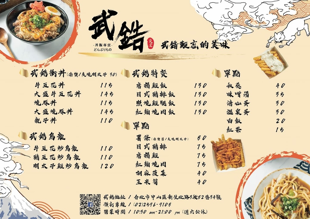 武鋯食堂¥丼飯專賣どんぶりもの臉書:https://www.facebook.com/wugao91