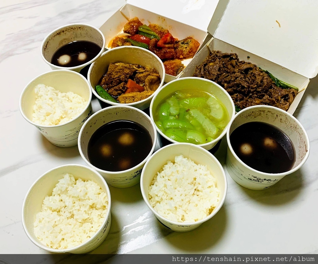 這次我們外帶的是三人分享餐,共有四菜、一甜點,外加三碗白飯。