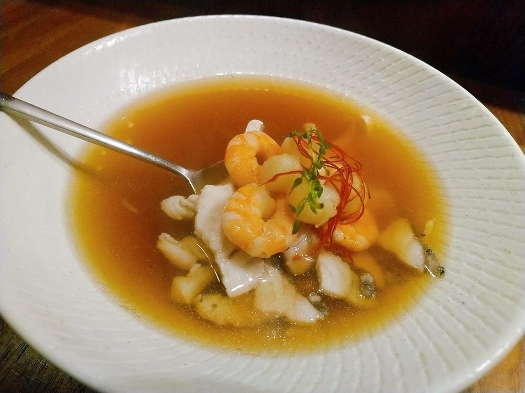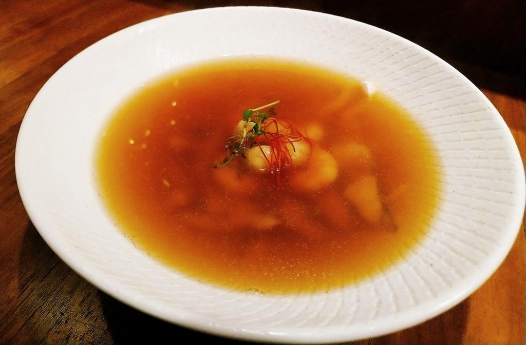 首先Alba日出義式餐酒館&洋酒專賣店,推薦我吃「鮮魚海鮮清湯」,選用蝦仁、干貝、鱸魚、香辛料等,海鮮很新鮮沒話說,湯頭鮮美又彈牙爽口,香辛料點綴後讓鮮魚海鮮清湯更呈現出多層次的口感,喚醒饕客的味蕾又讓人胃口大開,傳統西餐的加湯-桌邊秀,這樣的儀式感更揮別下班後的忙碌,冷冷的冬天趕快喝上暖呼呼又讓人開胃的鮮魚海鮮清湯,每一口都是100分的感動!