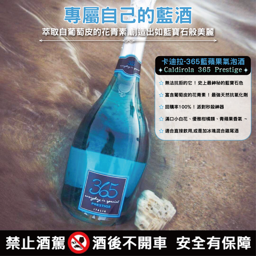 卡迪拉365籃蘋果氣泡酒是Alba日出義式餐酒館&洋酒專賣店賣最好的酒款,少見的藍寶石色澤令人印象深刻,因為萃取自葡萄皮的花青素,所以就像藍寶石這樣純淨高貴又華麗,喝起來就帶有滿口小白花、柑橘香、青蘋果香氣口感,可以直接享受或是當雞尾酒的調酒,是派對上的暢銷酒品~~女生也很愛的卡迪拉365籃蘋果氣泡酒!