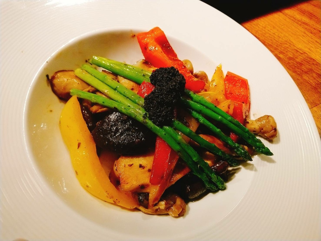 鐵板燒的製作方式會保留食材原有的美味,嘗起來口感鮮甜又鮮嫩多汁的蔬菜,讓人意猶未盡,吃了還想再續一盤「松露花香菇筍」!
