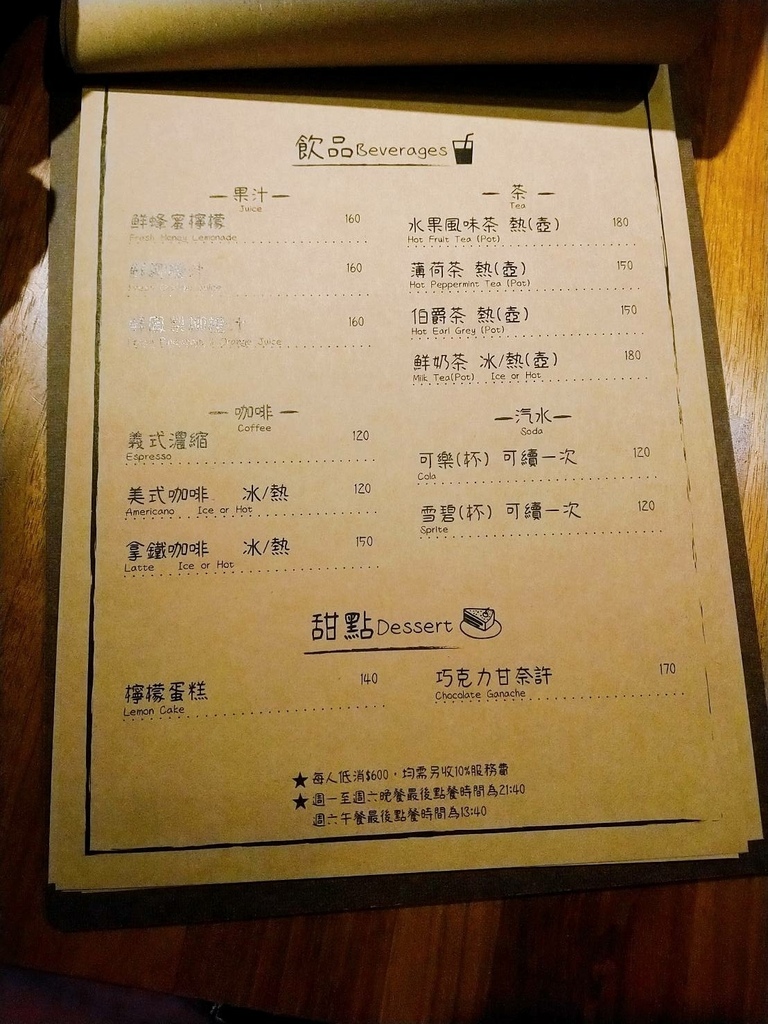 飲料及甜點: