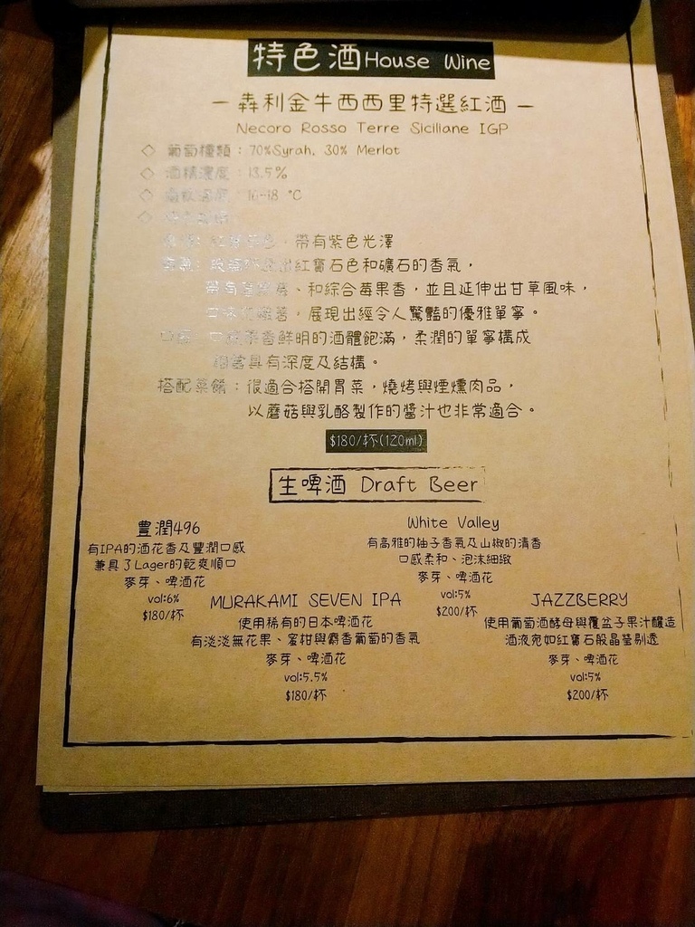 一直很喜歡吃西餐的我,身為老饕就是不斷去發掘新開幕的餐廳,Alba日出義式餐酒館&洋酒專賣店,裝潢上是洋溢著北歐風居家感的親切,同時也販售著價格超值划算的各類洋酒,先來看看菜單,菜單也會很詳細介紹酒類品項以及酒類的口感,Alba日出義式餐酒館&洋酒專賣店,是單點共享式的點餐方式,很適合情侶點想吃的菜餚並一起享受~~