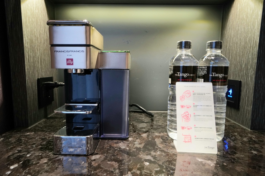 天閣酒店系列的迷你吧小金覺得以這個房價等級的飯店來說真的十分有誠意而且用心,最重要的是還有微波爐可以使用耶~晚上買宵夜回家還可以加熱一下真的超讚的。