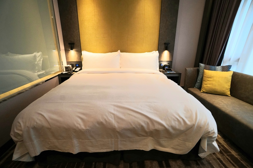 天閣酒店劍潭館的床正常Size軟硬度中等是小金喜歡的,床頭兩邊都有插座可以充電,這點對現在人來說真的非常的重要啊!