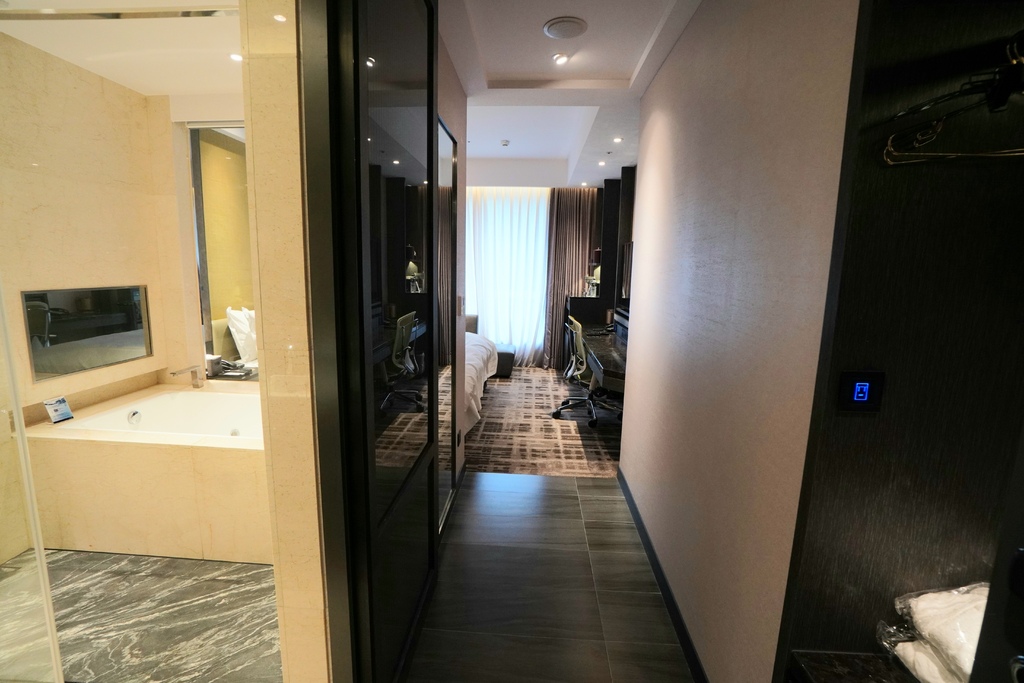 這天小金住的是豪華特大號床間大約十坪左右的大小,算是中等正常的房間整體來說空間規畫的還不錯,一進門是廊道有個小小的落塵區跟鞋帽區。