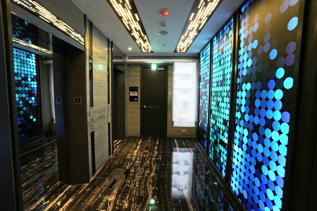 天閣酒店劍潭館在不少地方都加入了不同的設計原素,就連梯廳也是簡單又不失設計感。