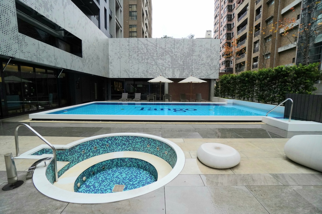 天閣酒店劍潭館的天畔泳池就位於一樓的戶外,這天來因逢下雨又是疫情期間所以泳池沒有開放使用,不過在這裡散散步走走拍個美照也是挺不賴的。