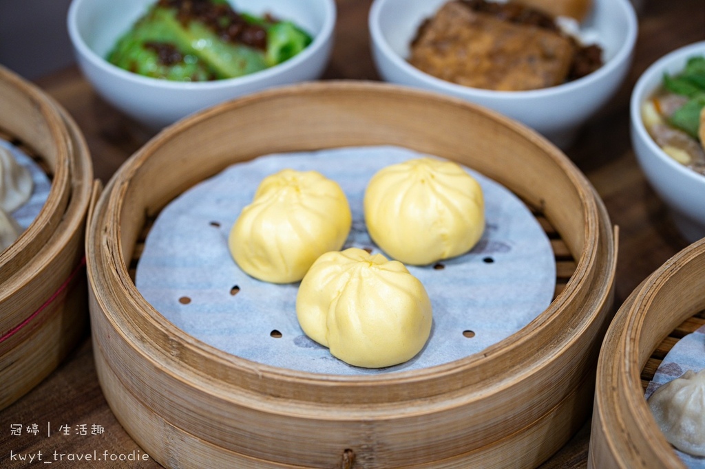 一上桌就把它剖半,可以看到金黃流沙從剖面流出,吸睛度100分!加上鬆軟的奶皇包外皮,很可以。