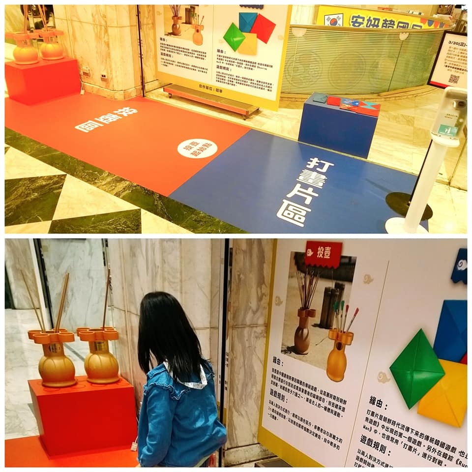 一進入展場門口就有兩種最具有歷史意義的遊戲--投壺與韓劇魷魚遊戲中的打畫片,姬蝶從小到大就是韓流偶像團體第一代的粉絲,以前就很嚮往去韓國旅遊,無奈始終沒有機會去韓國旅遊,從小印象最深刻就是偶像H.O.T、酷龍、S.E.S,自然也有追看很多版本的韓國古裝劇張禧嬪,韓國宮廷古裝劇中常看到嬪妃們平時大門不邁、二門不出,常常聚在一起玩投壺,像箭一般的玩具投入壺中的洞孔內就代表成功!