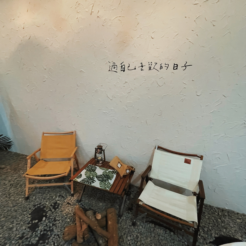 後方的露營區真的是超讚的朋友圍在一起聊天吃飯,這就是在享受露營的感覺啊!白牆也真的是很適合打咖拍照,不得不說店家還照顧到小小孩,也有準備小小孩的露營椅可以一起拍家庭露營照啊👍🏻