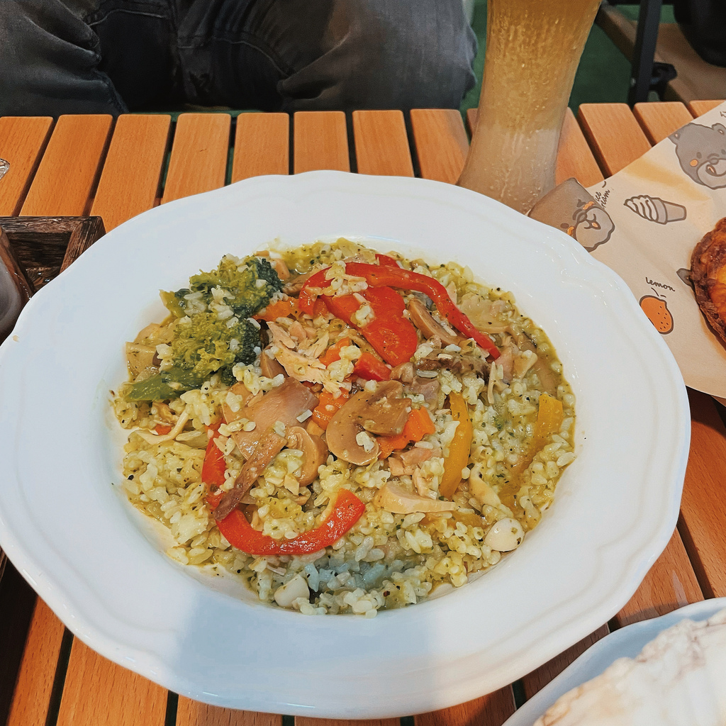 青醬搭配上雞肉是燉飯裡的最佳拍檔,飯將醬汁吸收得恰到好處完全不會軟爛,這一碗的份量超級足夠兩人吃