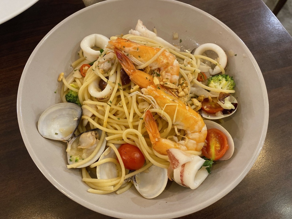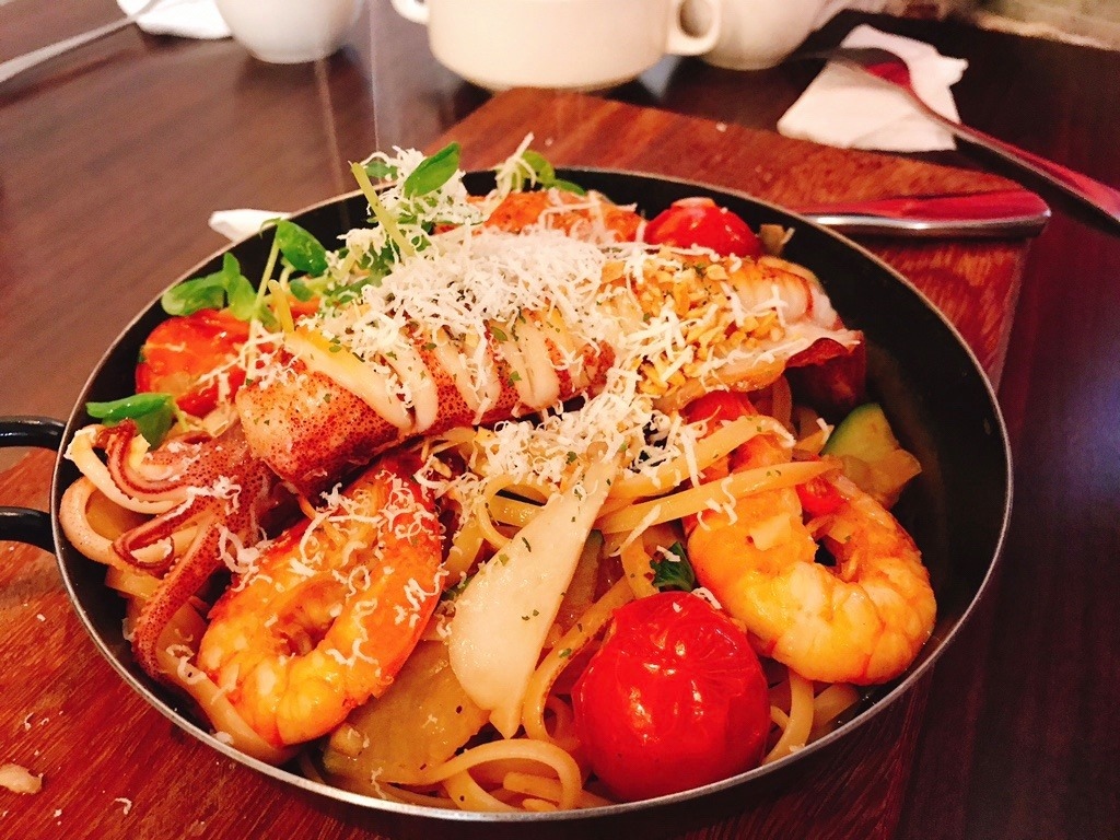 多種口味選擇的義大利麵中最多人推薦的招牌是「小卷鮮蝦」口味,一整隻的小卷與去殼蝦子,不論是視覺、嗅覺與味覺都是極高享受~不過Natalie不愛吃小卷所以就沒有點這一道,提供店家粉專的照片給大家欣賞!