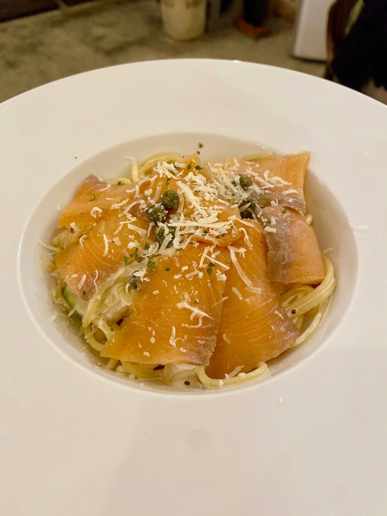 奶味不會太重、滑順好吃!你有吃過有些店家只會給一兩片燻鮭魚,兩三口就沒了嗎🤣寶島曼波的燻鮭魚給的很十足~至少有6片超讚的