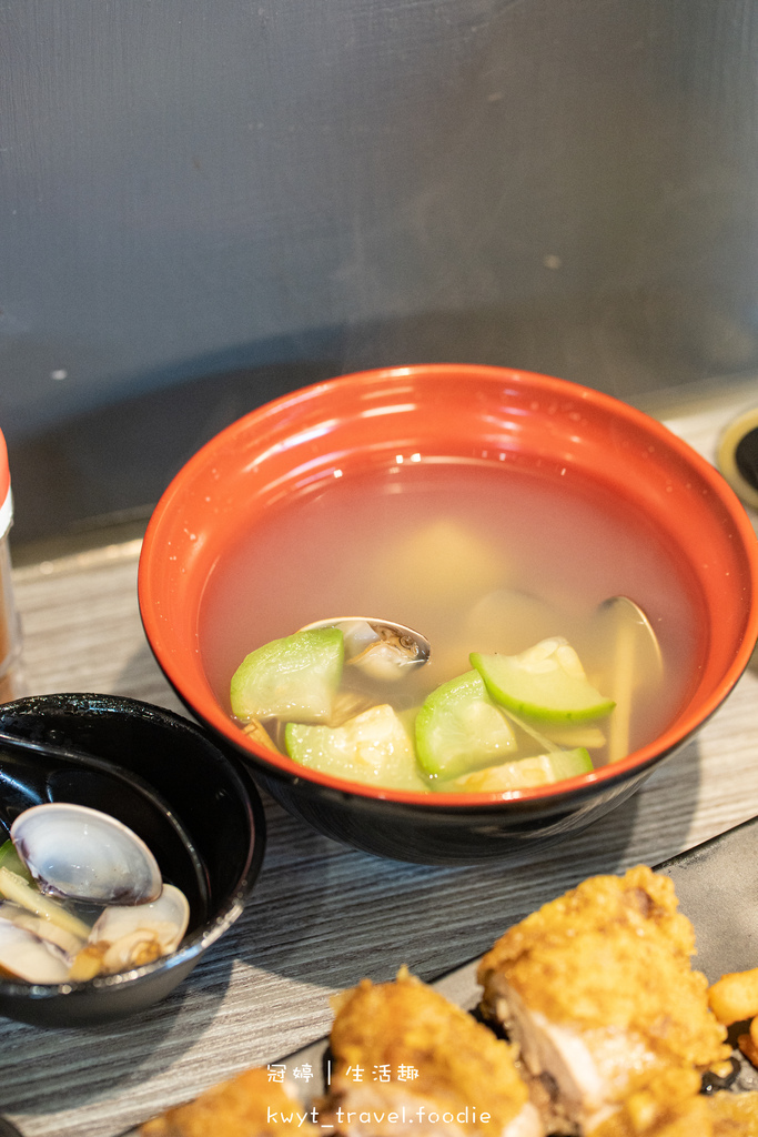 充滿鮮甜的絲瓜蛤蜊,每一顆飽滿的蛤蜊肉,入口即可感受到它的鮮味;滑口、清甜的絲瓜,增添湯品風味的薑絲,每一口都可以嚐到結合絲瓜甜味、蛤蜊鮮味、薑絲風味的多層次美味。