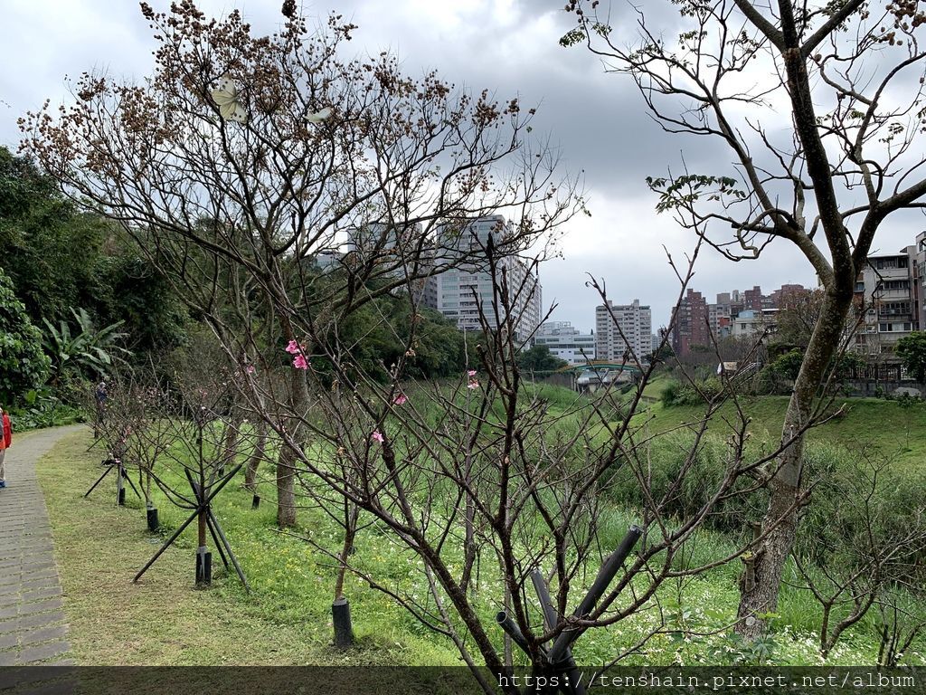 從五分埤開始,繼續往前走,溪的兩岸都有櫻花可賞。若是搭捷運的朋友,可以來、回走不同的一邊,這樣就可以盡覽兩岸的櫻花。
