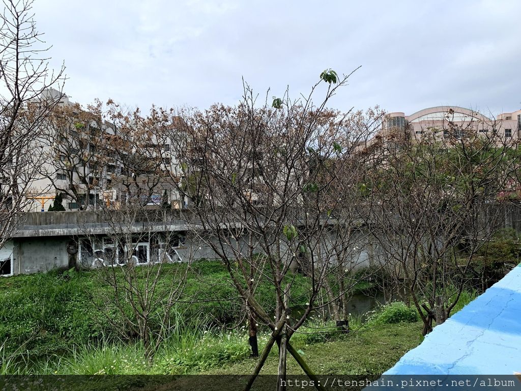 東湖國中圍牆後面,這一區有很特別的白色櫻花。