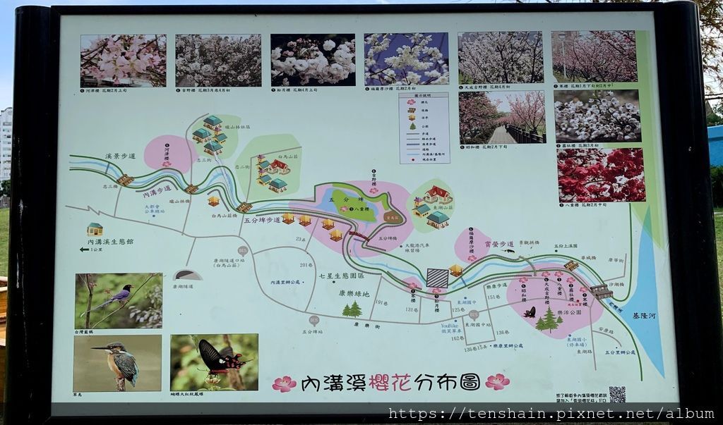 這是內溝溪生態步道導覽圖,主要的賞櫻路段是從"瓏山林橋"到"樂活公園"這一段。