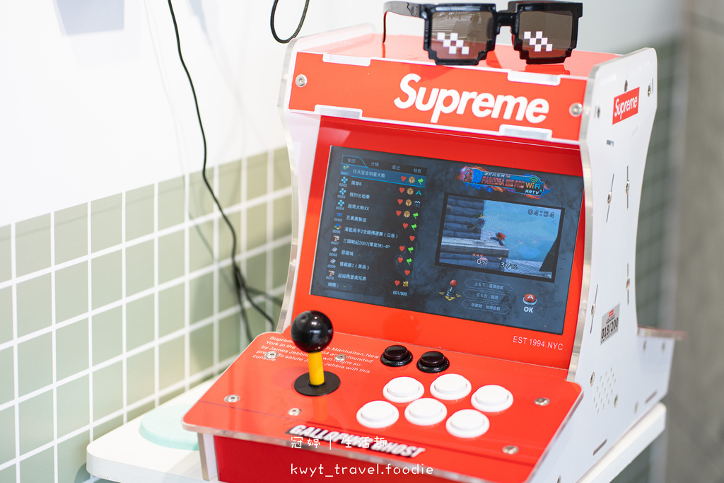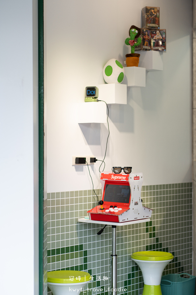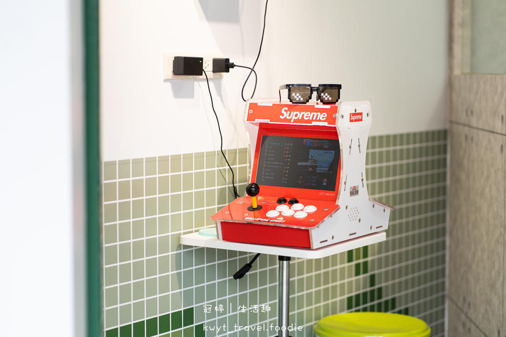 在等候飲品製作的時候,可以先到一旁設有遊戲機的空間暢玩、等候,也可以享受喝著綠豆沙牛奶、古早味手搖飲料玩遊戲機的體驗。