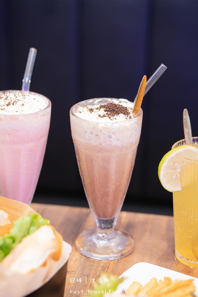 這餐點的:豪華雙層墨西哥辣肉醬牛堡、法式紅醬煙燻鴨胸義大利麵、美式BBQ肋排、煙燻鮭魚沙拉、海陸大拼盤、BBQ火烤大雞翅、大理石蛋糕、巧克力布朗尼、可可奶昔、草莓奶昔、芒果氣泡飲、香檬塔塔雙魚堡等餐點、飲品的美味分數均有在中間以上,四個人分享這桌,每個人都有享受到注入滿滿用心製作的美味、吃得很滿足,可以列入信義區聚餐餐廳的口袋名單。