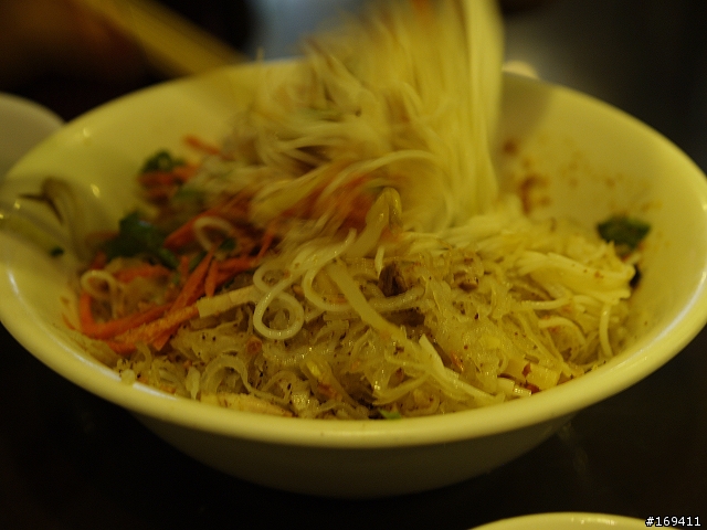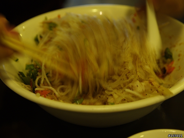 越式紅咖哩雞肉米粉~酸酸辣辣的,香味充滿整個口鼻;美中不足的是,米線燙口,咖哩湯卻只溫溫的?無法感受『湯麵一體』的快感!)